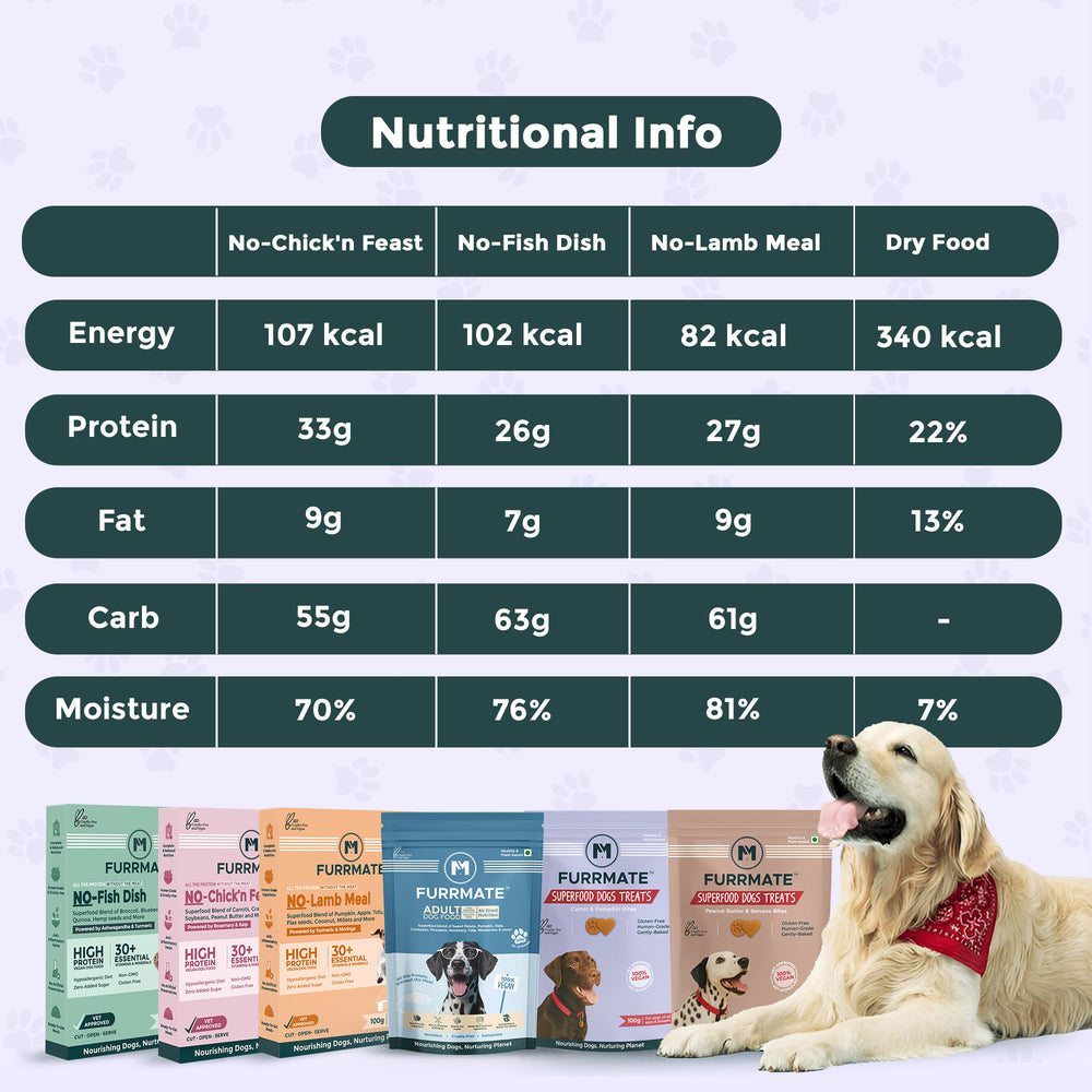 Backed by veterinarians, FURRMATE uses a nutritious blend of wholefoods and superfoods, including sweet potatoes, quinoa, tofu, and pumpkin and more, to keep your dog healthy and happy. Each ingredient is selected to fuel optimal well-being, ensuring a balanced, delicious, and healthful meal.